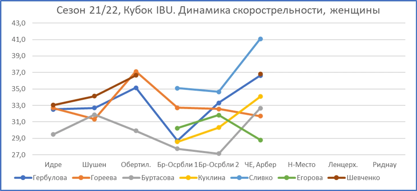 Линии скорострельности чётко показывают, кто бежал ГП и эстафеты: скорострельность не просела только у Гореевой и Егоровой. То, что происходило во второй части ЧЕ, кратко и ёмко охарактеризовал украинский сайт: "ЭТО-БЫЛ-НЕ-БИАТЛОН".
