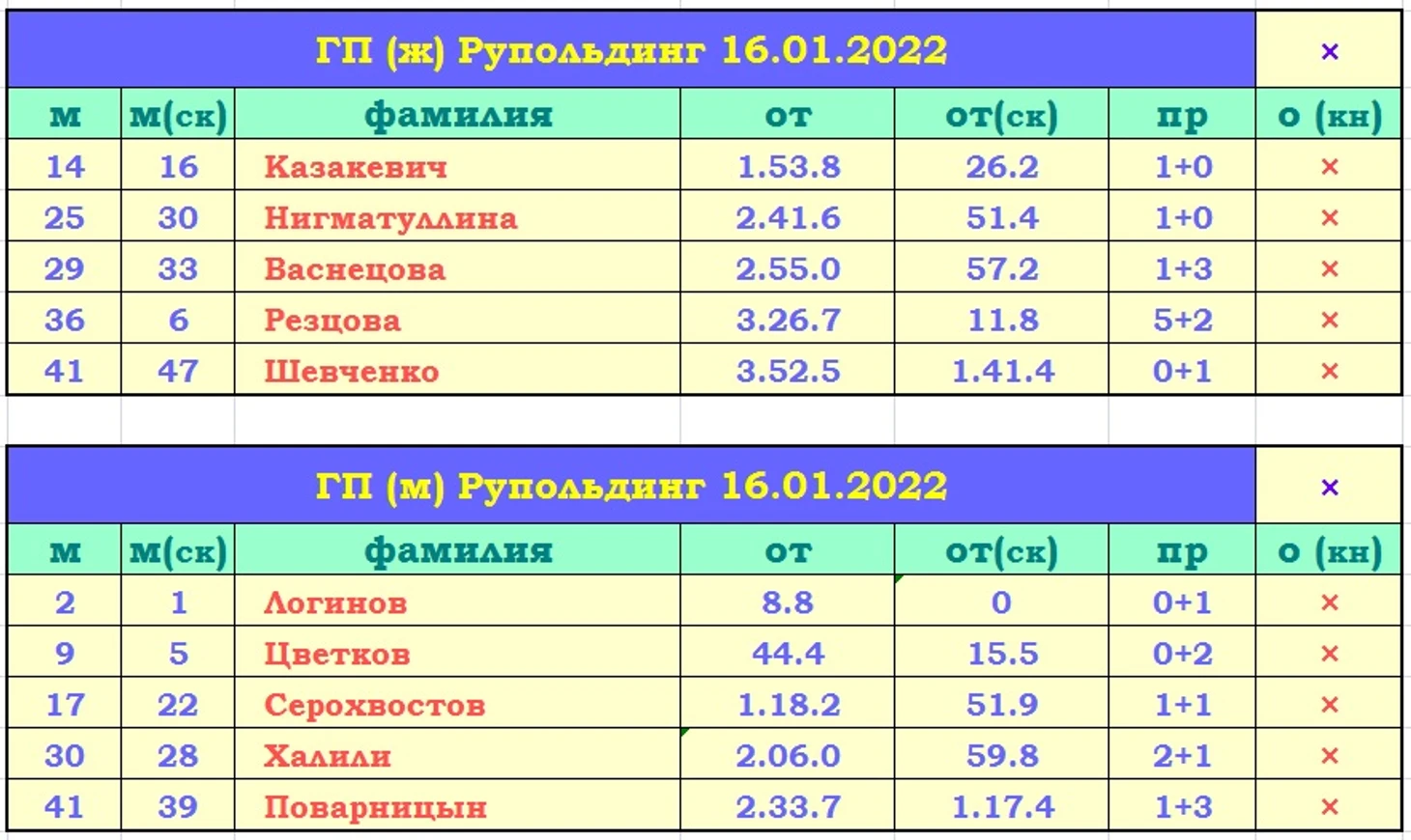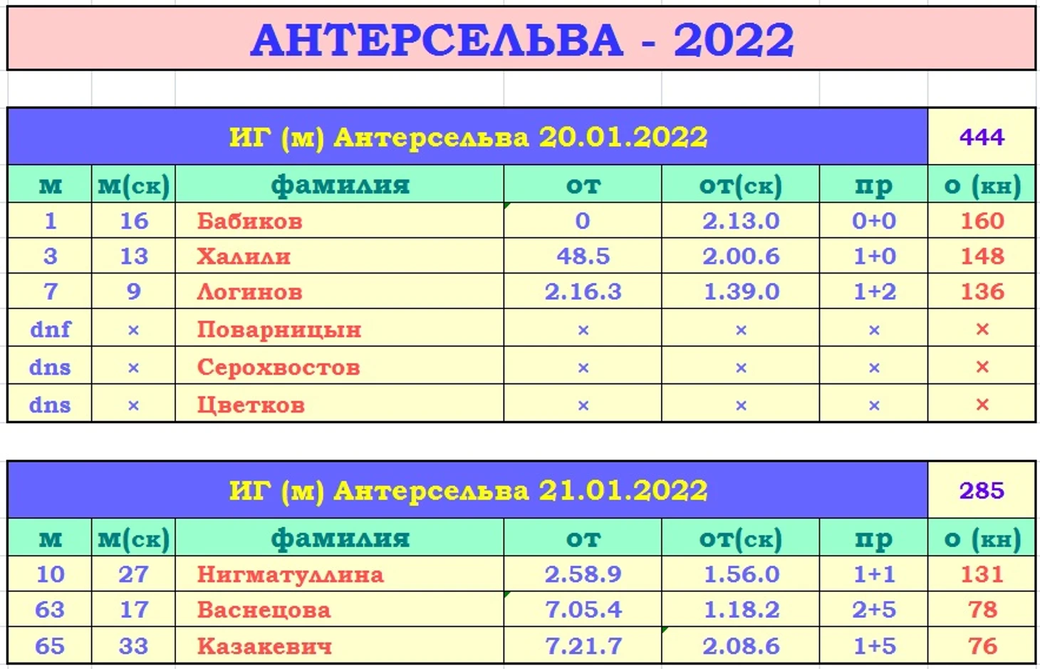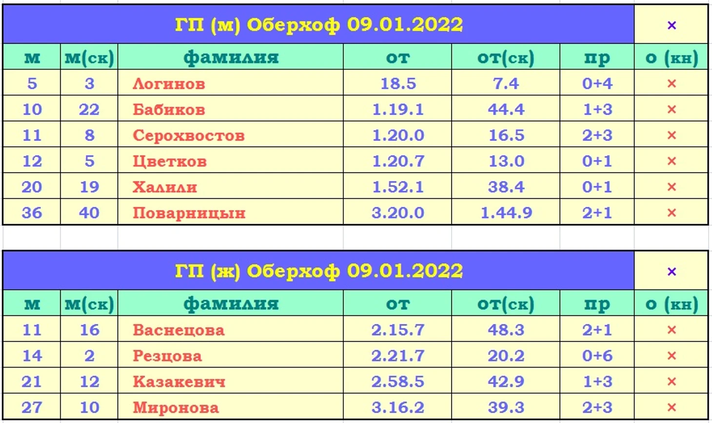 Напомню расшифровку аббревиатур в шапке таблицы: М - место занятое спортсменом в гонке. М(ск) - место в скоростном рейтинге гонки. ОТ - отставание от победителя гонки. ОТ(ск) - отставание от скоростного лидера гонки. ПР - промахи (лёжа + стоя). О(кн) - очки в зачёт Кубка Наций.