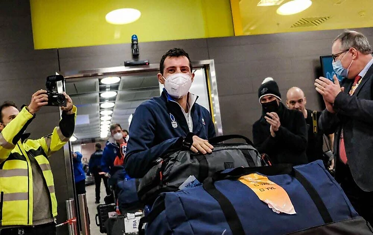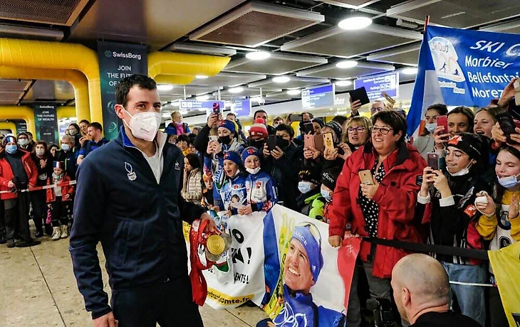 А вот как героев Олимпиады встречали в аэропорту Женевы: