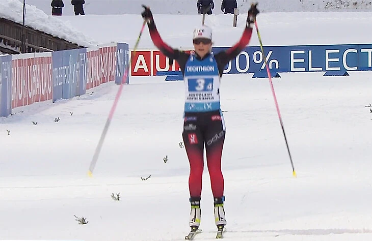 Прошло меньше трех недель – норвежка получила от врачей добро соревноваться и отпраздновала победный финиш прыжком на ленточке.