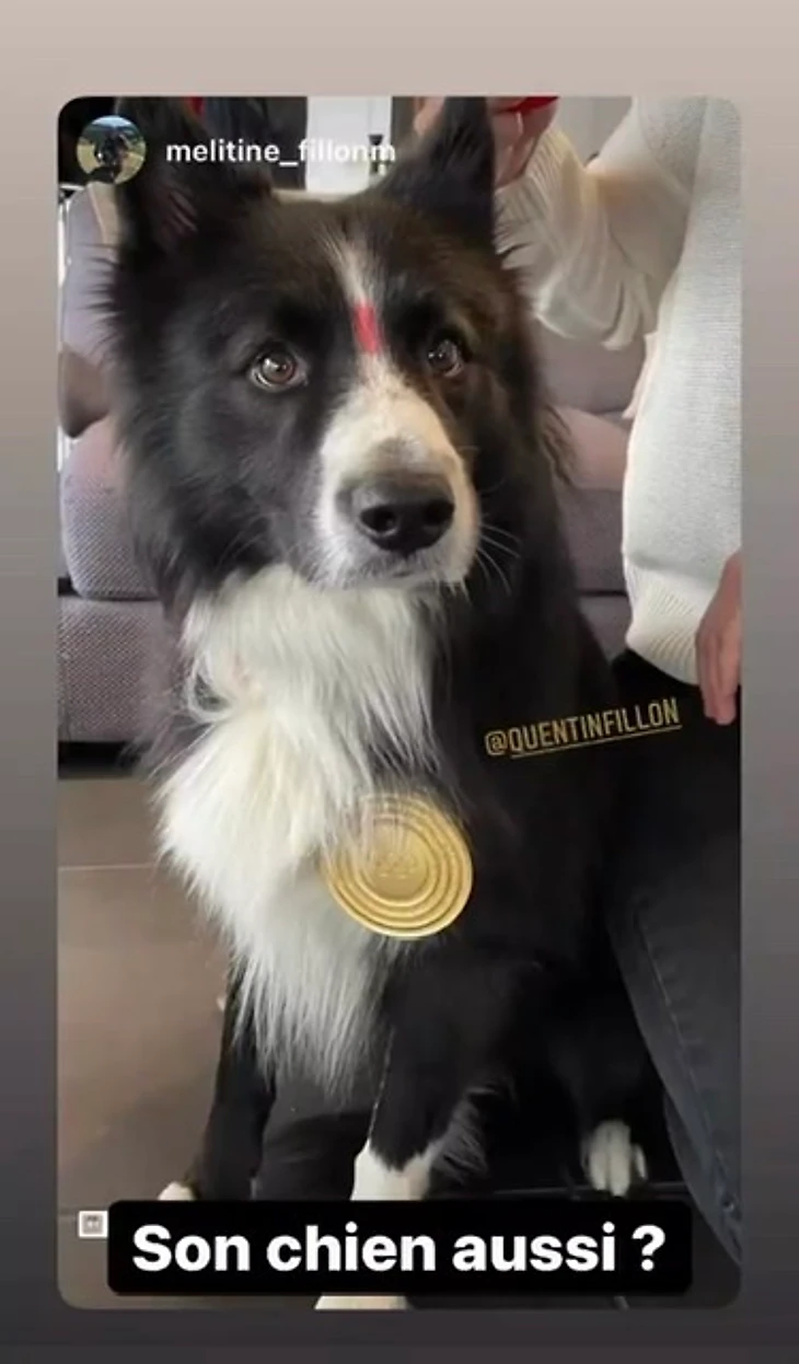 P.S. Ах да, чуть не забыла. Этот милый пёсик принадлежит младшей сестрёнке Кантена, Мелитине. Просто пёсик с олимпийским золотом на шее: