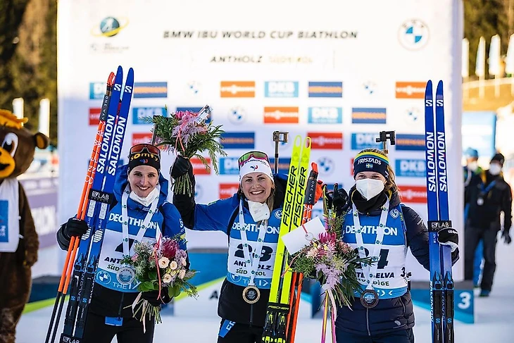 А теперь давайте просто вспомним лучшие моменты этого сезона! И начнём с победной эстафеты в Эстерсунде, где будущая королева французского биатлона (тогда ведь мы ещё не знали!) элегантно финишировала с флагом: