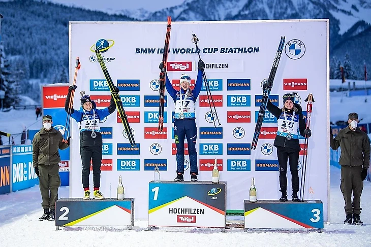 Подиум в спринте на третьем этапе в Хохфильцене: