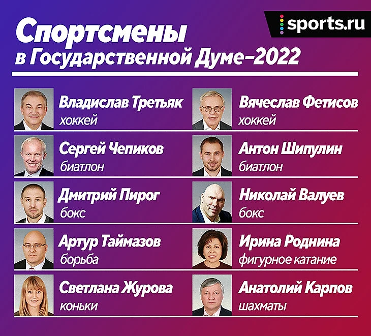 Теперь по двое в Думе – от хоккея, биатлона и бокса.
