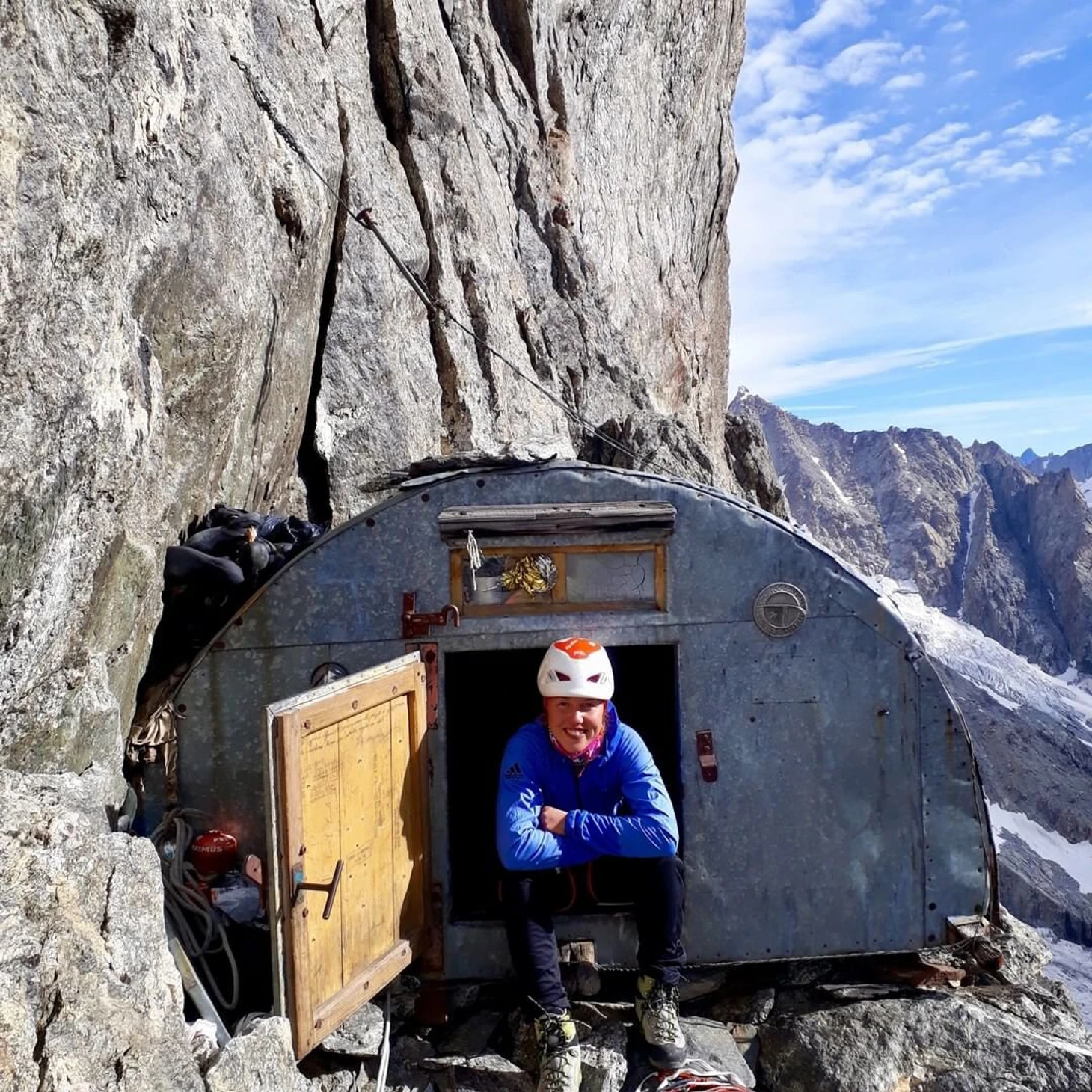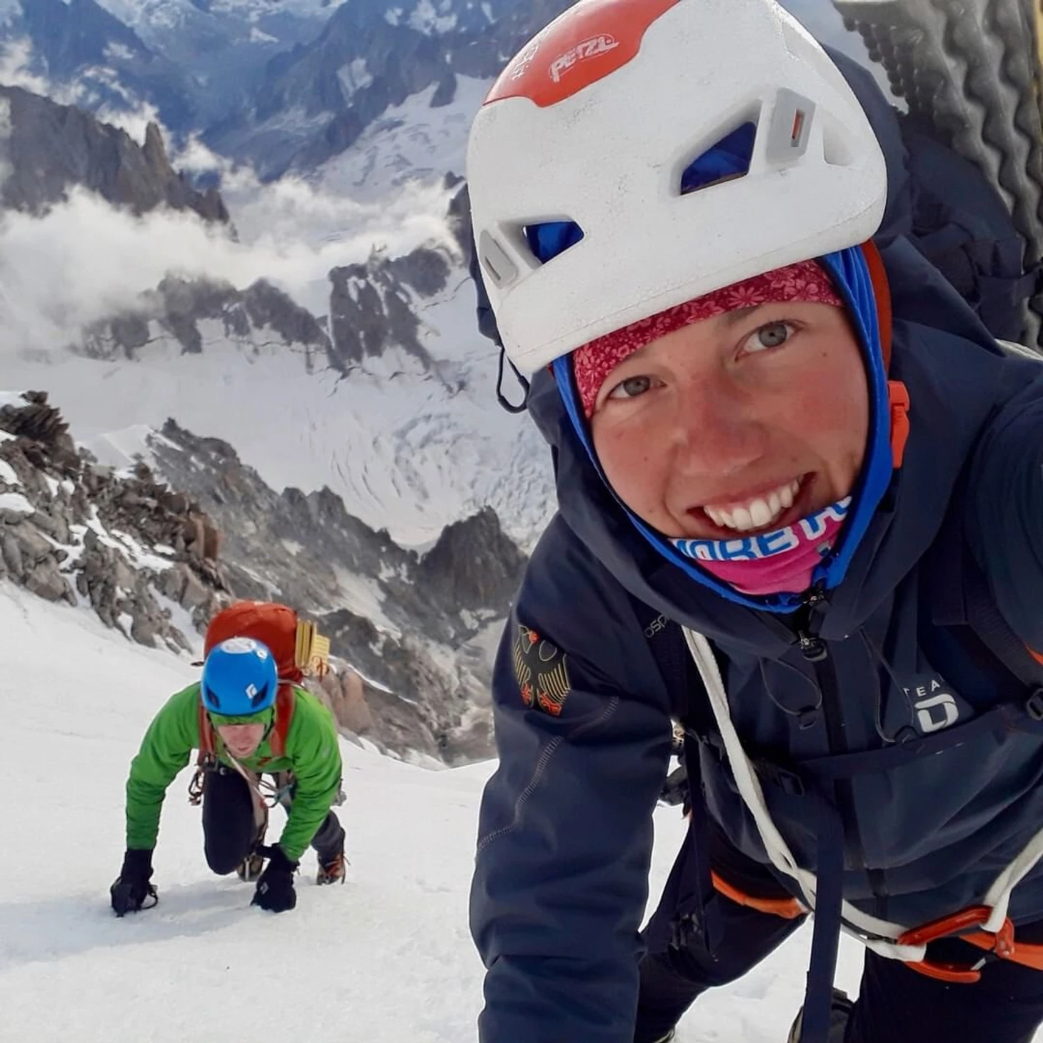 Пик Пти-Дрю находится в горном массиве Монблана во французских Альпах. Дальмайер совершила восхождение по классическому маршруту по северной отвесной стене.