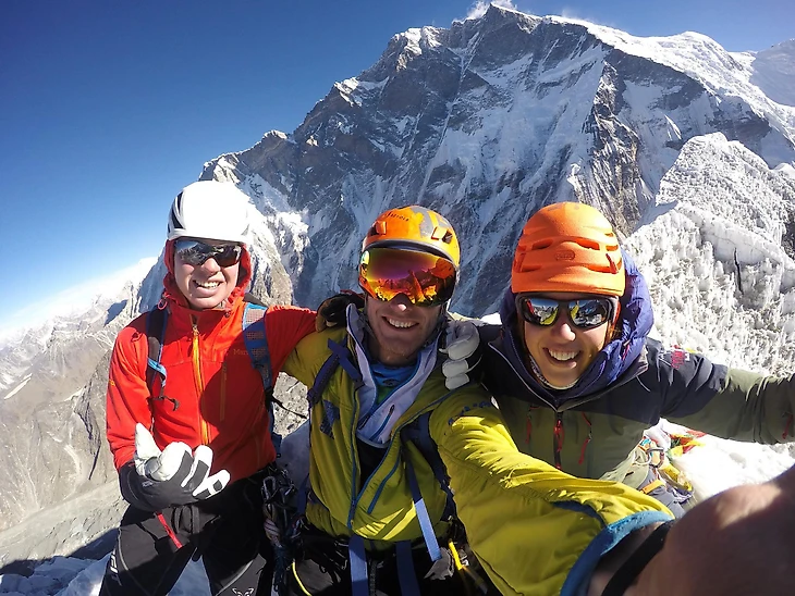 «Из города Лукла мы пешком добрались до Ледяного пика на высоте 6189 м. Однако нашей целью была вершина Ама-Даблам. В сложных условиях мы взобрались на нереальный гребень горы и поднялись на высоту 6550 м, но перед самым пиком пришлось развернуться из-за погодных условий.