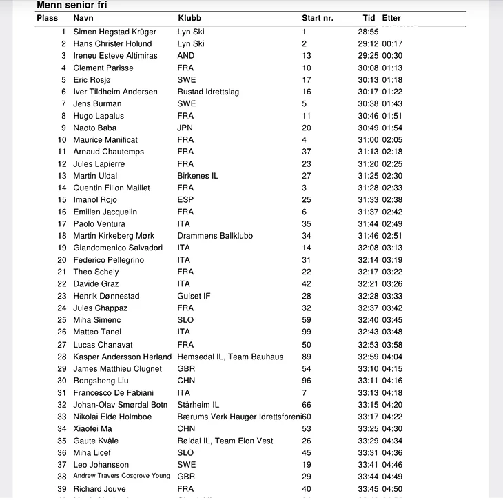 Фабьен и Антонен так и не решились помериться силами с лыжниками, а Эрик Перро, занявший 42-ое место, не поместился на скриншоте...