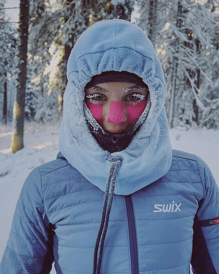 На холоде надо заботиться о коже, потому что можно обморозится – и пальцы, и нос, и щеки, и уши. Тем более сейчас, когда сезон в России, – у нас очень холодно. Нужно максимально закутаться, заклеиться тейпом, чтобы как-то спасти щеки и нос от обветривания и холода.