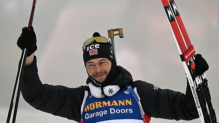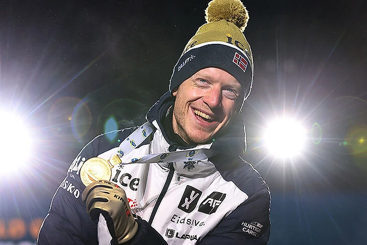 Вместе со смешанной эстафетой и спринтом у норвежца три из трех золотых в Оберхофе – и это на фоне господства по сезону. Впереди индивидуалка и масс-старт, сингл-микст и классическая эстафета – календарь позволяет замахнуться на исторические семь из семи.