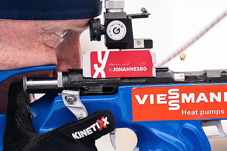 А здесь – особое украшение эстафеты: сверхзвуковая стойка от Йоханнеса Бо на последнем этапе. Он стрелял в одиночестве – лидирующий француз Кентен Фийон-Майе уже уехал за золотом.