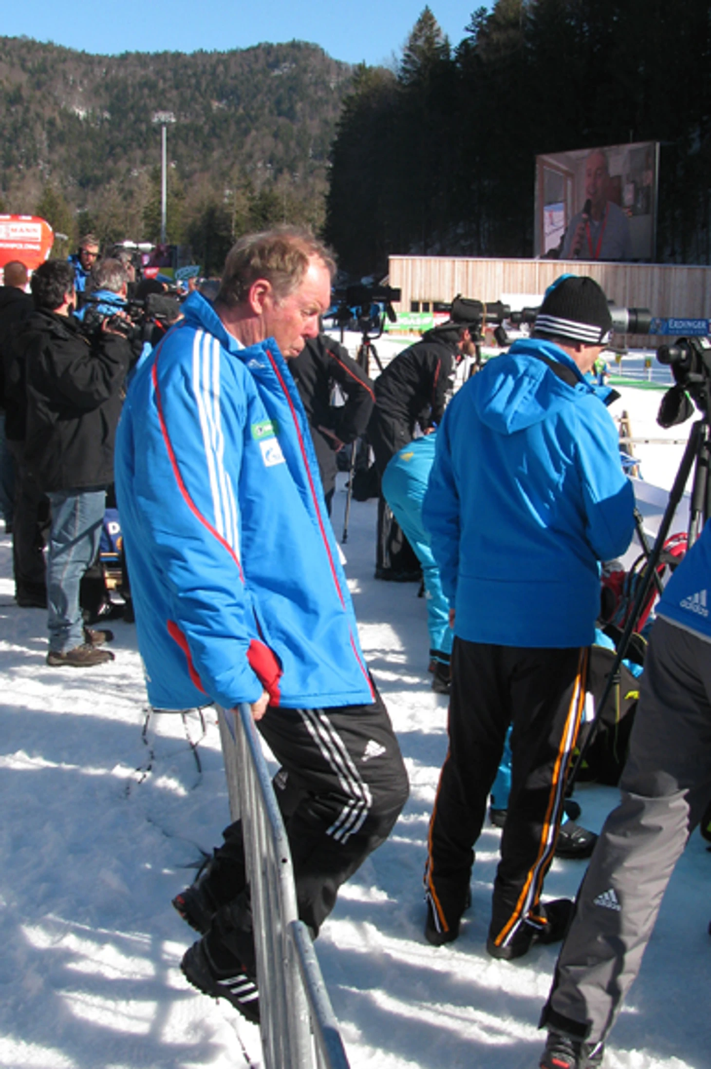 Баварские Альпы в один миг накрыло весной. Редкое ощущение: из пресс-центра хотелось скорее выбраться к свежему воздуху. Не наоборот. На улице – жара. В черной куртке махом напекало спину. Вторые штаны, взятые в командировку для подстраховки, упали на дно сумки – надеюсь, что до конца турнира.