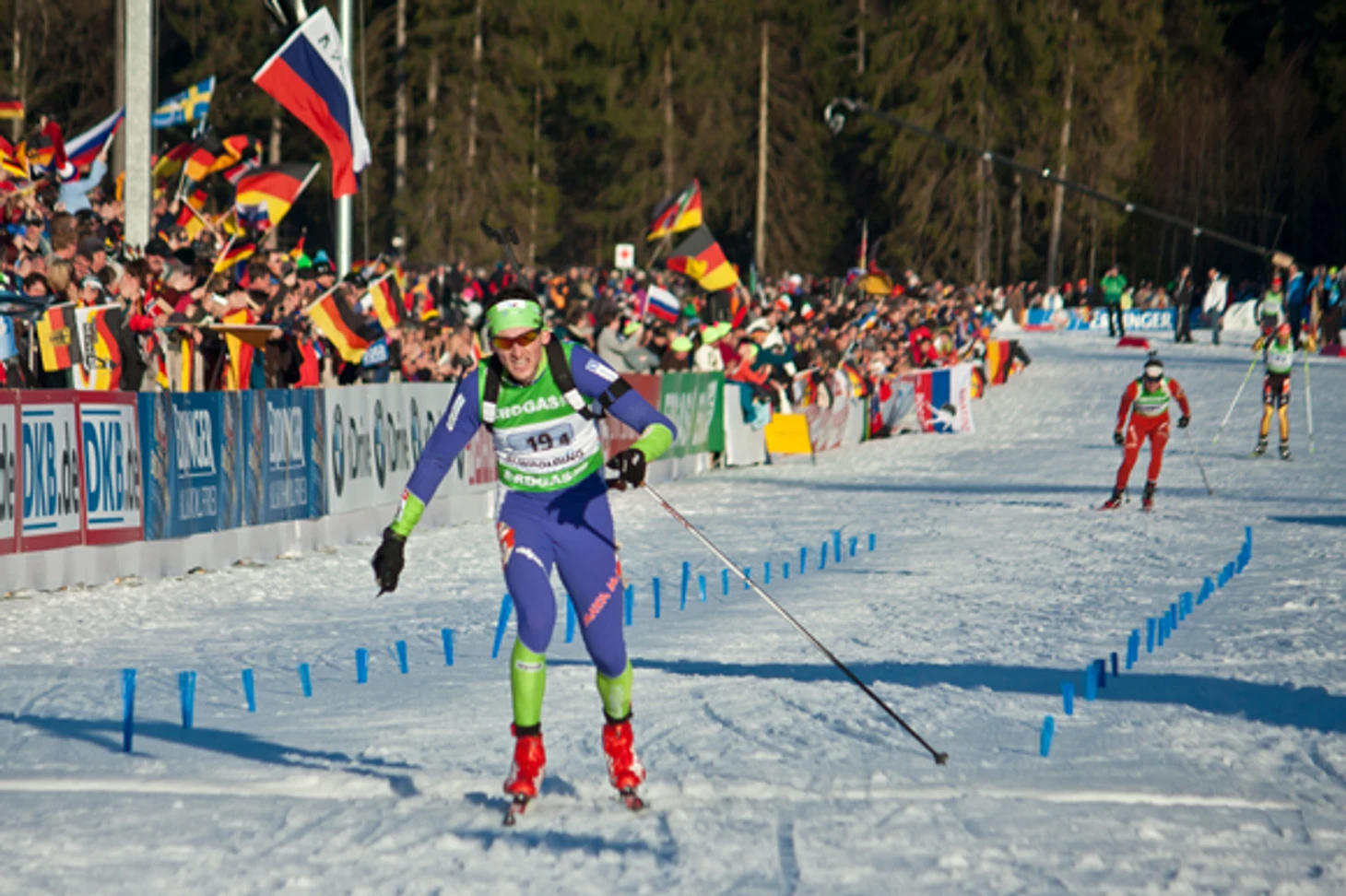 Эмиль праздновал шестое в карьере чемпионство чуть ли не полкилометра. Словенцы, тиская друг друга в финишном городке, горланили что-то вроде «а-а-э-и-у-у-у». Заглушить их не мог никто. Арена звонко молчала. Нойнер и Хенкель в четыре руки стучали беднягу Пайффера по спине.