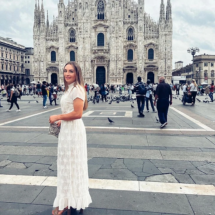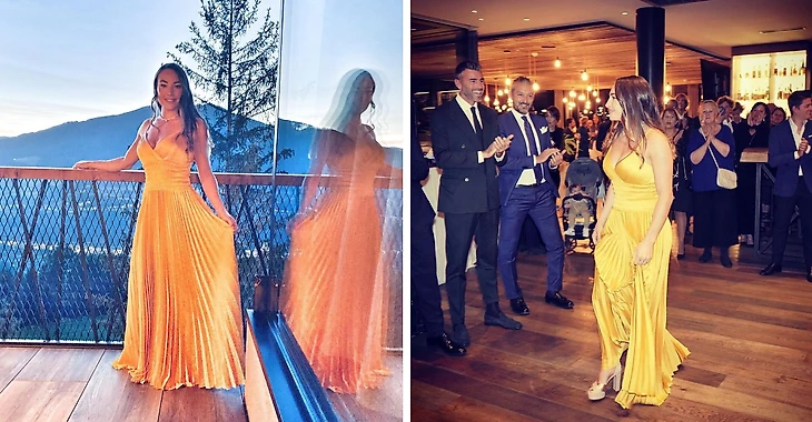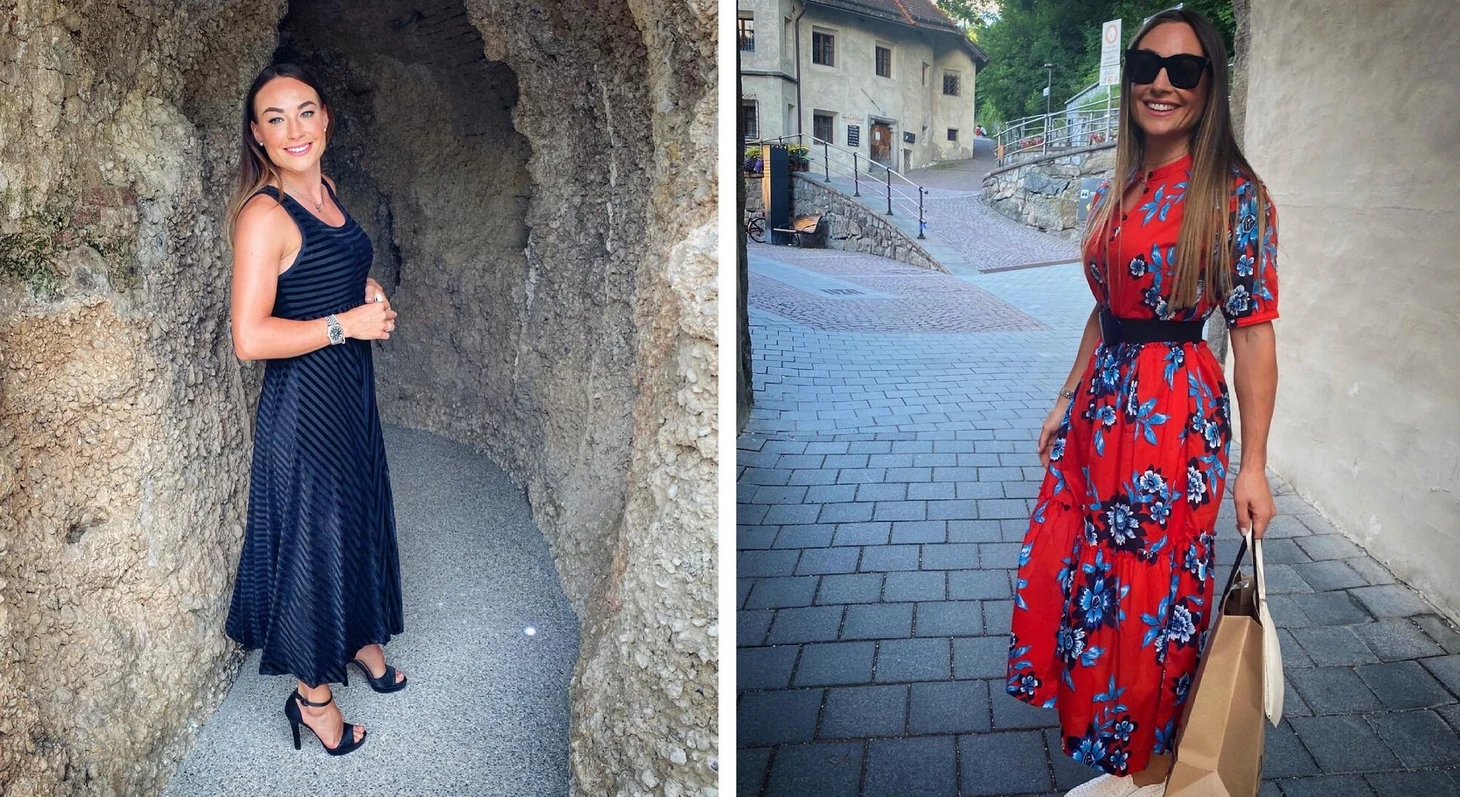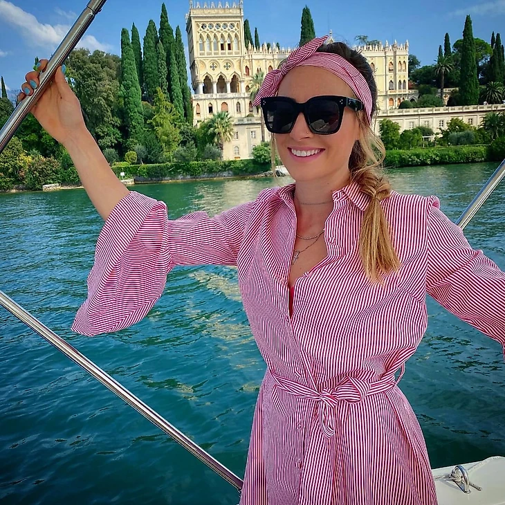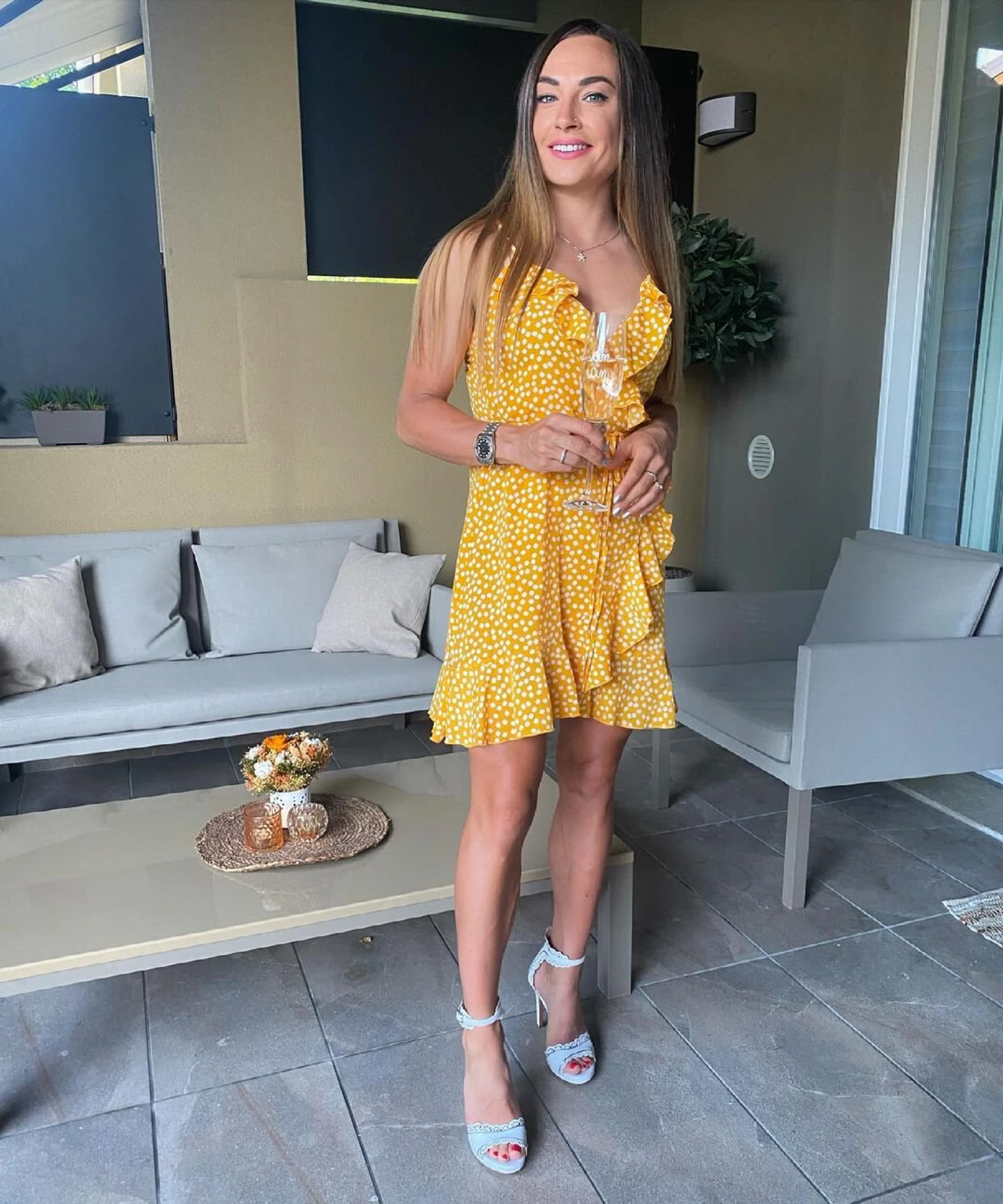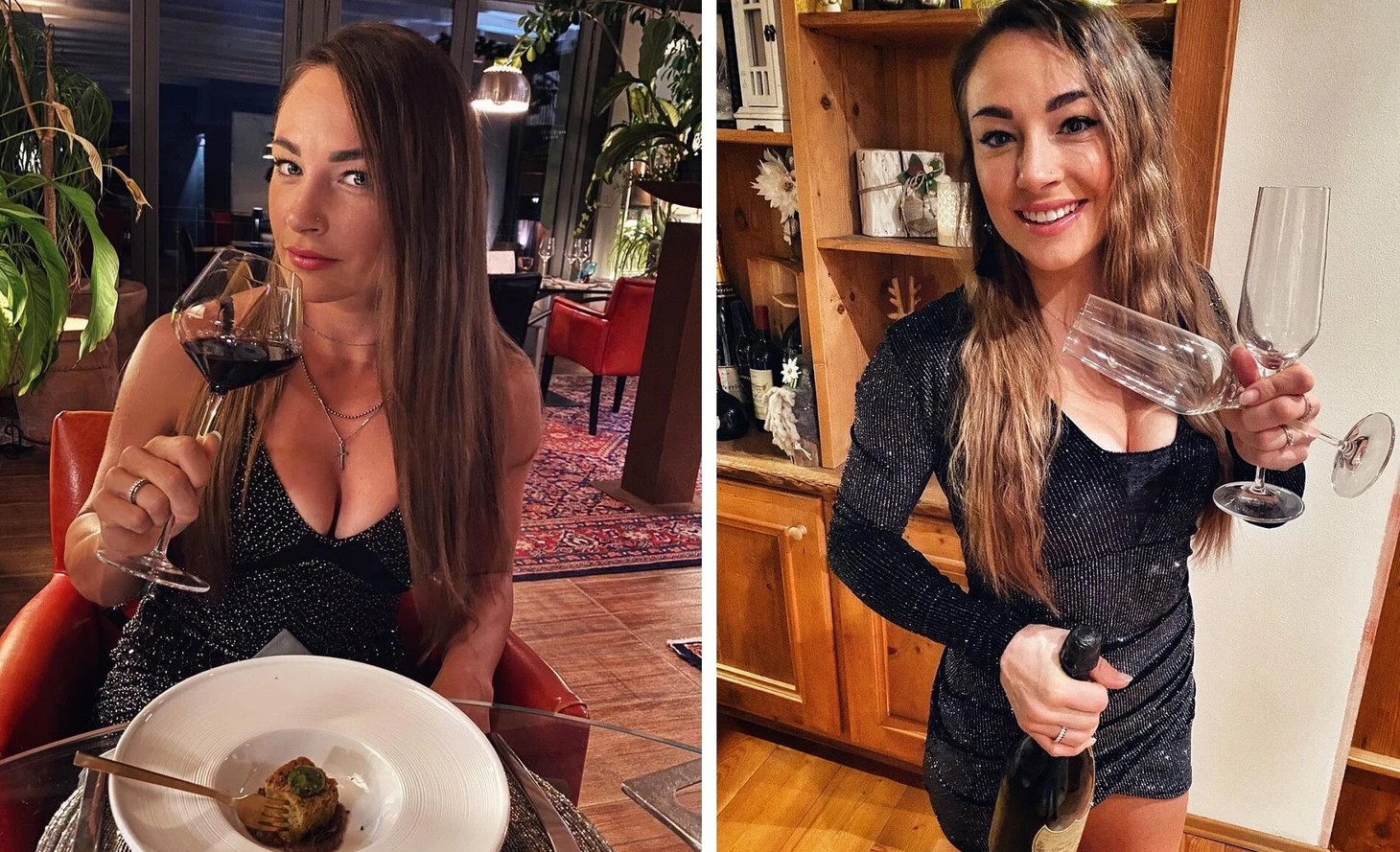 Это уже лето 2021-го, классика: с фужером и в легком платье.