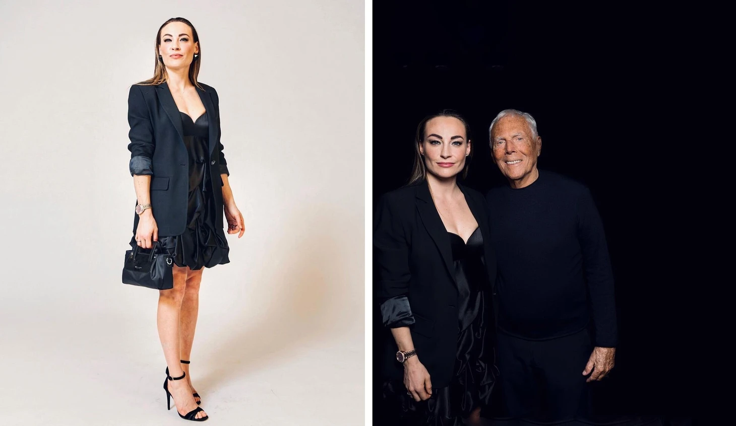 Для встречи с легендарным модельером Джорджо Армани – элегантный тотал блэк.