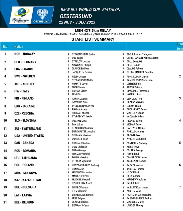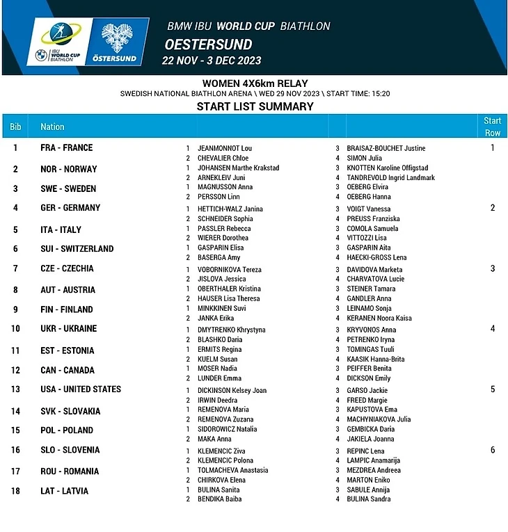 Смотря на старт-лист, фаворитами мне казались Франция и Швеция, а в борьбе за медали должны были схлеснуться Германия, Италия и Норвегия. Но за несколько часов до старта в станах итальянок и немок произошли замены: Ханна Аухенталлер вместо Лизы Витоцци и Селина Гротиан вместо Софии Шнайдер. После этих замен норвежский квартет я поднял в своих прогнозах до медали.