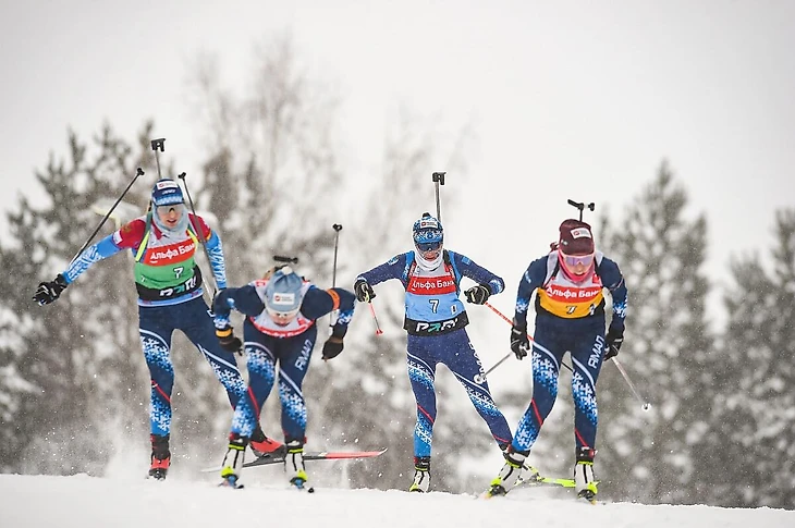 1. Это гонка с интервальным стартом: длина дистанции у женщин 7,5 км, у мужчин – 10 км. 4 биатлониста из одной команды/региона стартуют одновременно и бегут рядом. При прохождении трассы разрыв между первым и последним членом команды не должен превышать 15 секунд или 50 метров.