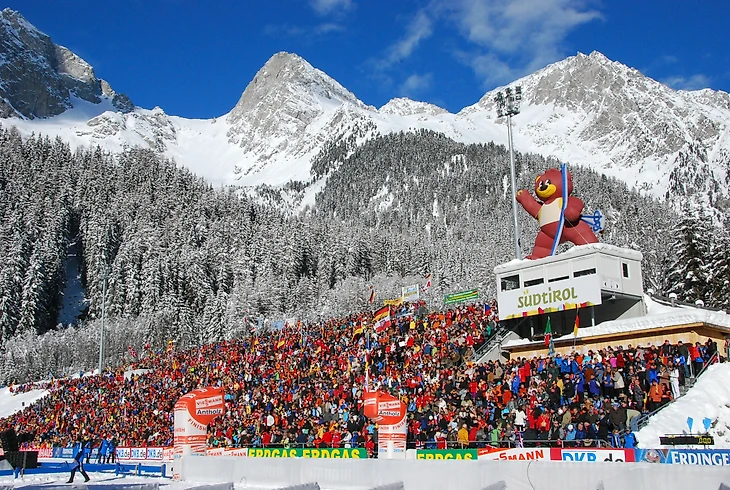 Как и предшествующий Рупольдинг, Антхольц – историческое для биатлона место. За время с самого первого розыгрыша Кубка мира по текущий сезон лишь дважды в биатлонном календаре не было этапов в Антхольце. В 1978 году этот этап прошёл невероятно успешно для ГДР: в индивидуальной гонке победу праздновал Франк Ульрих, в спринте Клаус Зиберт, да и эстафету выиграла первая из двух сборных ГДР в лице Манфреда Бира, Клауса Зиберта, Франка Ульриха и Эберхарда Рёша, а вторая завоевала бронзу. Кубок мира среди женщин берёт начало в сезоне 1987/1988 и конечно же, этап в Италии в календаре того сезона был. Спринт, который тогда у дам был на 5 километров, выиграла норвежка Элин Кристиансен, индивидуальную гонку на 10 километров выиграла болгарская спортсменка Ива Шкодрева, а эстафета из 3 этапов по 5 километров была выиграла сборной США в составе Нэнси Джонстон, Пам Нордхейм и Патрис Янковски.