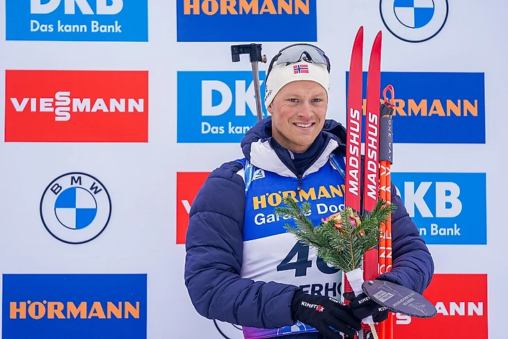 И тем самым единственным биатлонистом, котоорый за прошедшие три этапа набрал ещё больше очков чем Йоханнес Тиннес Бё стал его тёзка Йоханнес Дале-Шевдаль. И пускай начался новый биатлонный год для норвежского спортсмена только с 13 места в спринте Оберхофа, зато в последующих пяти личных гонках он неизменно занимал места в первой пятёрке, причём отмечу, что места эти были постоянно разными, так что единственным из мужчин, кто собрал в этом году полный комплект медалей в личных гонках стал именно Дале-Шевдаль, который благодаря такому отличному началу года вышел на второе место тотала.