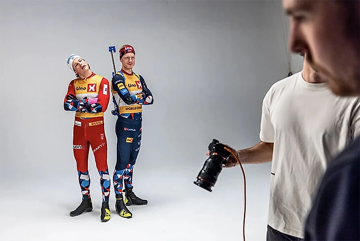 Мы встречаемся с двумя выдающимися норвежскими спортсменами на фотосессии их общего спонсора. Благодаря выгодной сделке с Uno-X (сеть автозаправочных станций в Норвегии и Дании – Sports.ru) они теперь причастны к соответствующей норвежской велокоманде.