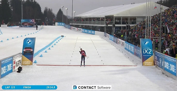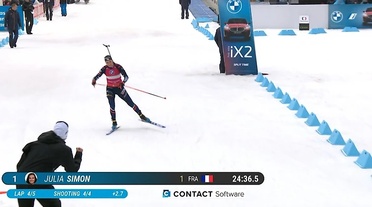 ● После очередной быстрейшей стрельбы Симон уходила на финишный круг с огромным запасом. Лиза Виттоцци шла второй в минуте и 15 секундах, другие соперницы отставали больше чем на полторы минуты.
