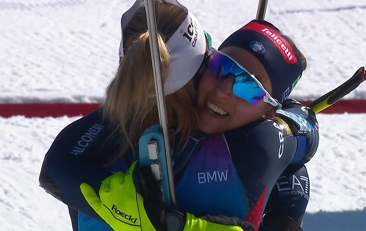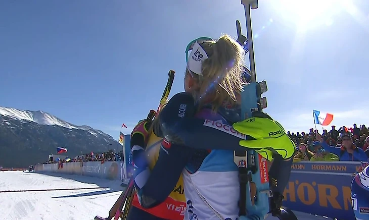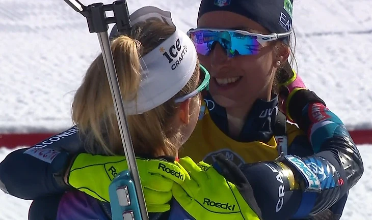 Кадр сезона в биатлоне: соперницы за Кубок мира в крепких объятиях на финише