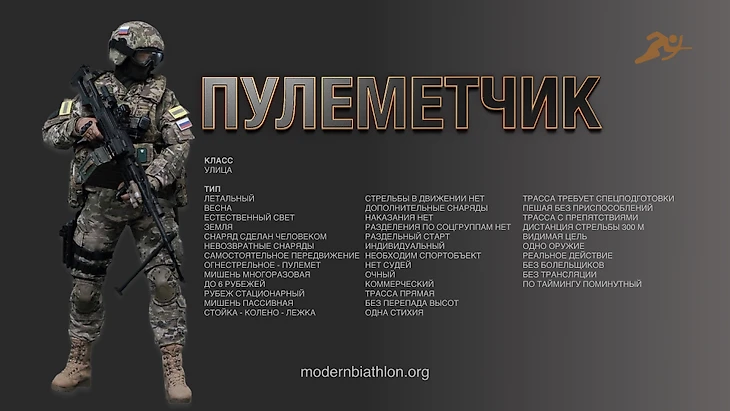 Шоу-матч по современному биатлону Пулеметчик против Снайпера пройдет в 4 раунда. Задача участников как можно быстрее поразить мишени и пройти как можно больше рубежей.