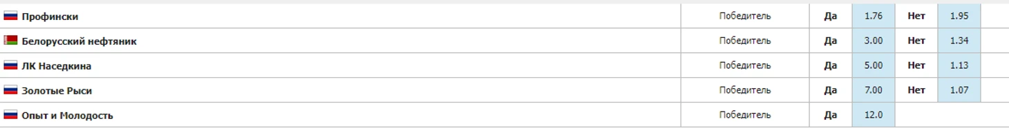 Букмекеры отдают предпочтение команде «Профински», и это вполне объяснимо: вчерашний результат говорит сам за себя. Далее с заметным отставанием идут «Белорусский нефтяник» и остальные участники. Но я сделаю ставку на то, что «Профински» не выиграет. Несмотря на блестящий успех накануне, сегодня нас ждёт новое соревнование, и мы знаем, насколько непредсказуемыми бывают гонки. Поэтому моя ставка: «Профински» — нет, коэффициент 1.95.