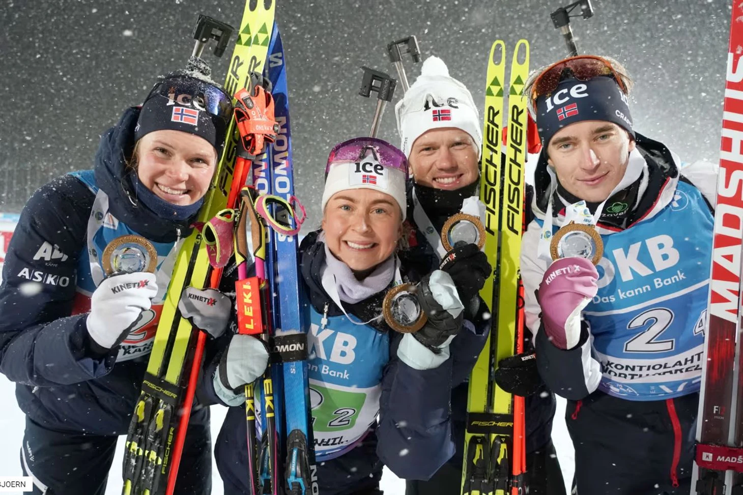 1. Норвегия (Каролине Кноттен, Ингрид Тандревольд, Йоханнес Дале-Шевдал, Вебьорн Сорум) – 1:09.59,6 (0+10)