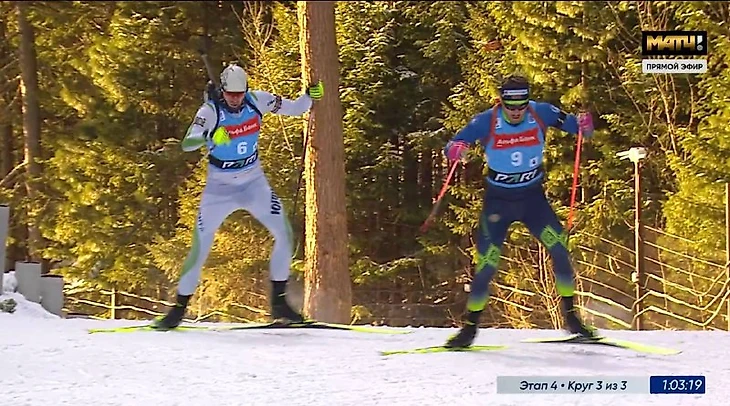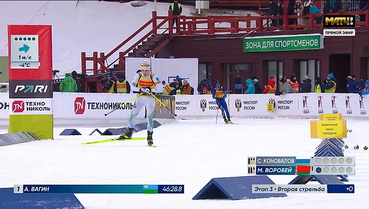 Василий Томшин из Свердловской области, Дмитрий Лазовский из белорусской команды-1 и Никита Поршнев из ХМАО-Югры вышли на последнюю стрельбу почти одновременно. Лучшую стрельбу показал Никита Поршнев, занявший первое место. Василий Томшин закрепился на второй позиции с отставанием в 11 секунд. У Дмитрия Лазовского возникли проблемы с лыжами, что привело к потере времени – он отстал на 16,2 секунды. Несмотря на это, спортсмен из Белоруссии смог обогнать Василия Томшина и сократить разрыв с лидером до семи секунд перед финальным этапом. Оба участника использовали дополнительные патроны при стрельбе стоя, затем отправились к финишу. Василий Томшин уверенно завершил гонку, заработав для своей команды бронзу.