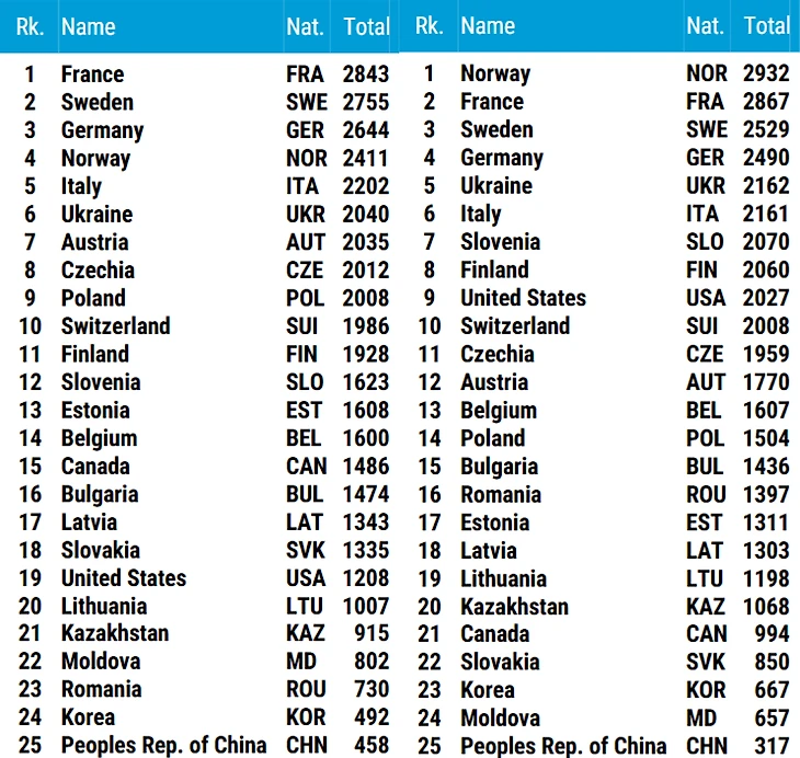 У мужчин же за одну зачетную гонку для кубка наций поменялось очень мало. Так, первым изменением будет смена позиций между казахстанскими и канадскими биатлонистами за двадцатое место.