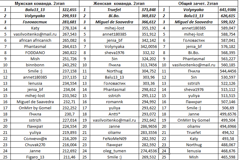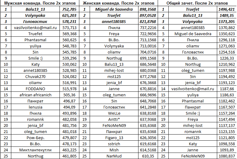 а у меня прошлый этап хорошо у женчин провал у мужчин этот этап наоборот в итоги в обшем зачёте и в итогах по двум этапам везде ужасна :(