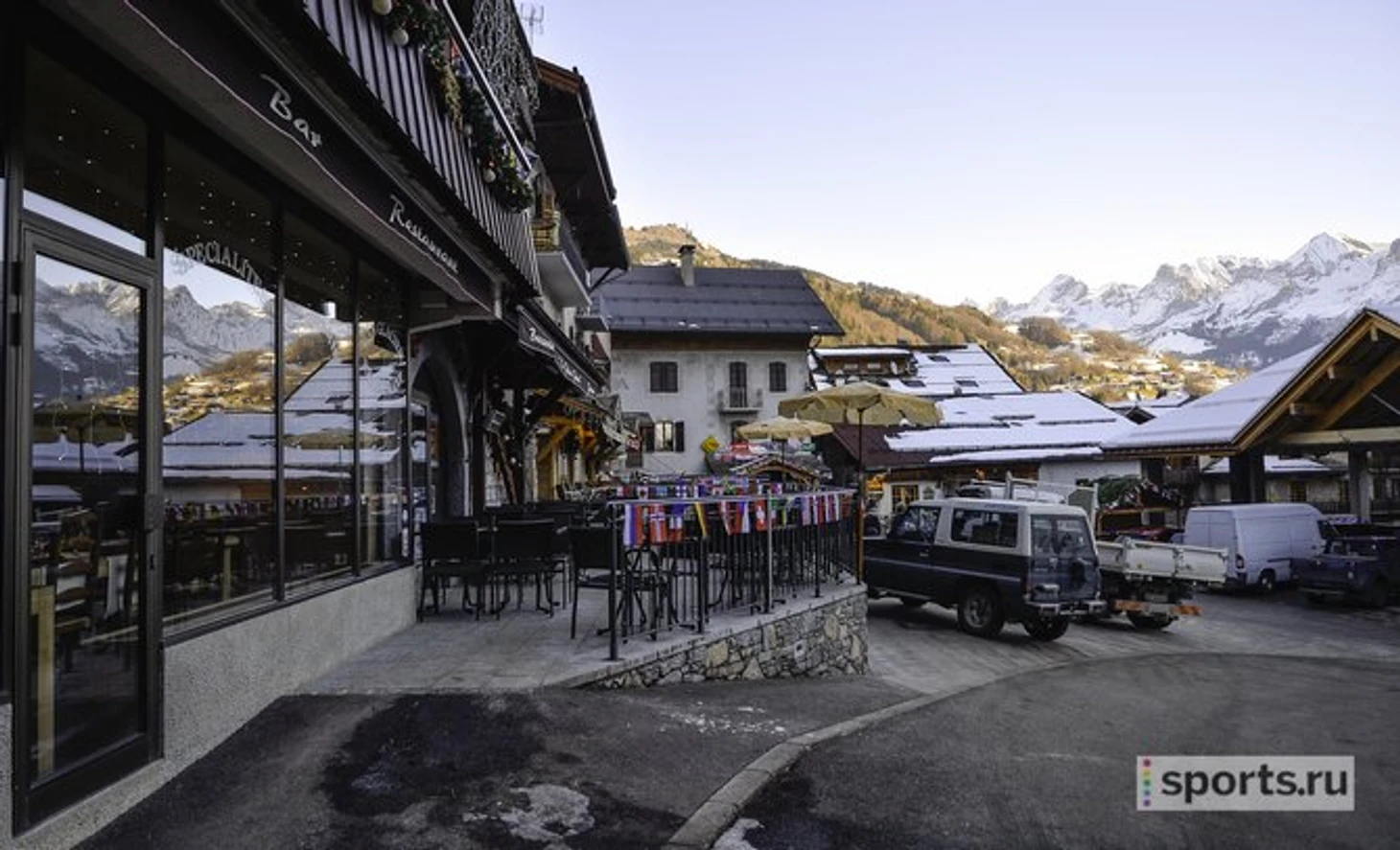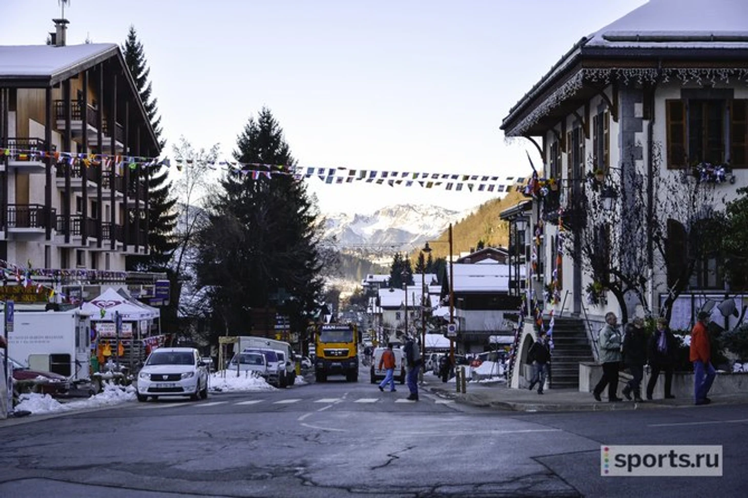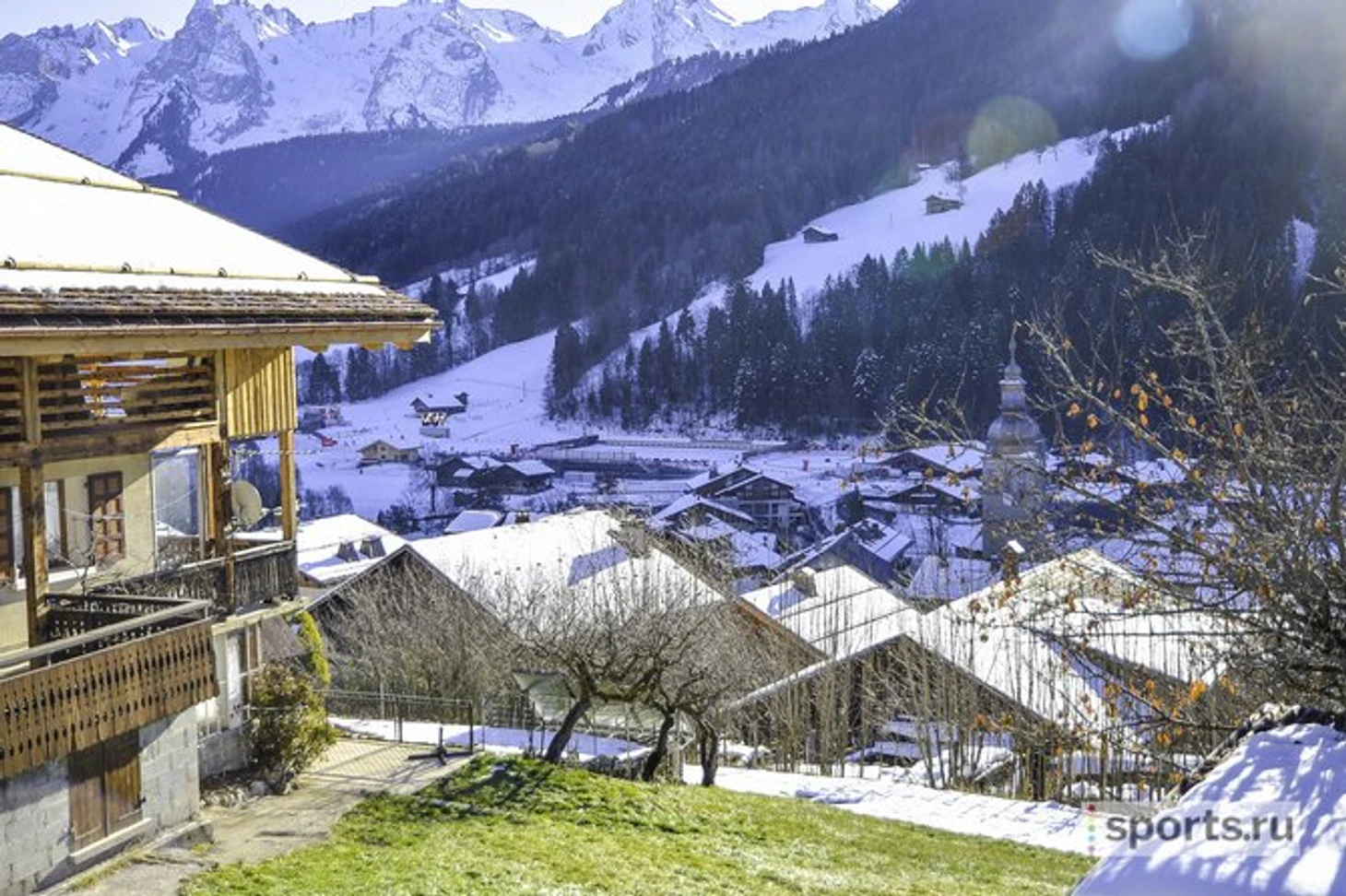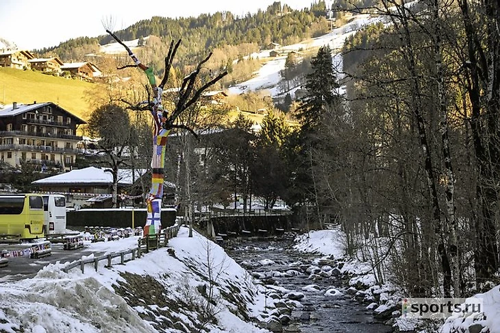 Здесь даже ходят рейсовые автобусы, при том что дорог шире, чем на две полосы, поблизости нет. Главный местный ориентир – башенка церкви, заметная из любой точки города. Вокруг – красивейшие долины деревушек-курортов. Знаменитый Куршавель – с другой стороны горы, относительно недалеко – Монблан, а в пяти километрах – Ла Клюза, где поселилась российская команда.