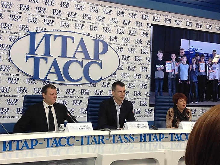 Итак, сегодня в ИТАР-ТАСС, на Тверском бульваре, 2, большая пресс-конференция Прохорова и его верного помощника Сергея Кущенко. Ждем. На месте.