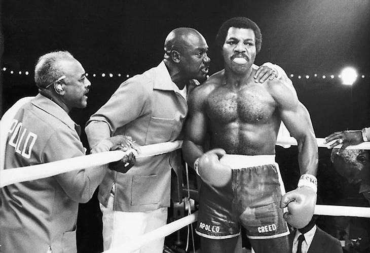 Карл Уэзерс в образе, принесшем ему мировую известность, – громила Аполло из «Рокки». Но вообще, по молодости Уэзерс играл в американский футбол за «Оукленд Райдерс».