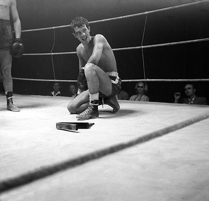 Жан-Поль Бельмондо становился чемпионом Парижа по боксу, но здесь всего лишь кадр из фильма.