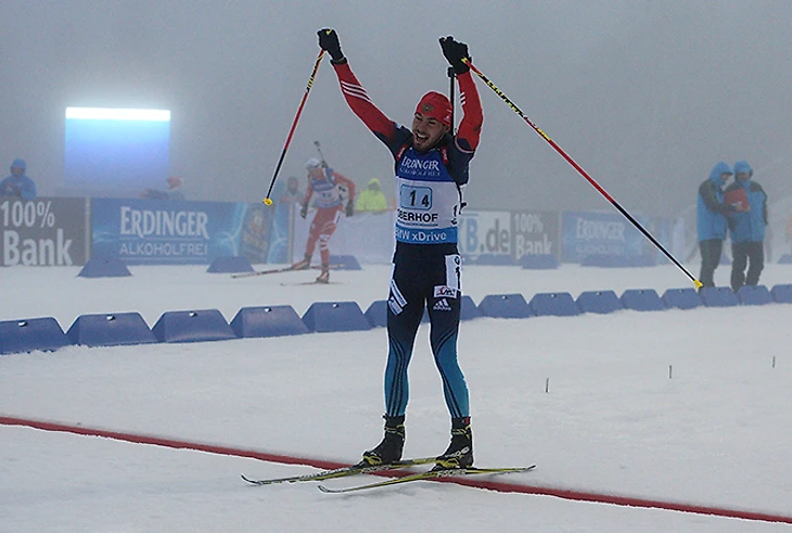 Казались ли 57 секунд между ним и Бьорндаленом на старте четвертого этапа безнадежными? Пожалуй, нет – в кромешном тумане Оберхофа закладываться на чью-то (на бьорндаленскую – особенно) безупречность было бы глупо. Тем более, этапом раньше младший Бо со штрафным кругом привез Дмитрию Малышко (с таким же кругом) еще больше. А вчерашняя Домрачева? Ух!