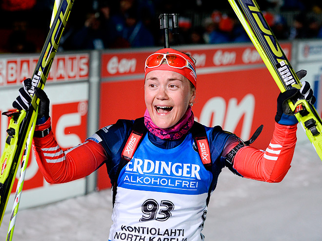 Наконец-то наша победа на чемпионате мира. Ждали её все с нетерпением и уже очень давно и вот свершилось. Наконец-то и на нашей улице праздник.11.03.2015 года. Женская индивидуальная гонка в Контиолахти на чемпионате мира. Екатерина Юрлова, ушедшая на старт под 93-м номером, уверенно двигалась по подмороженной трассе от одного рубежа к другому. У неё не было запаса в скорости, и права, хотя бы на ошибку тоже. Или 20 точных выстрелов, или, в самом лучшем случае, очередная цветочная церемония. Юрлова выбирала первое и стала чемпионкой мира. Неожиданно, совершенно невероятно, но стала. Газеты пестрят заголовками «Неизвестная русская побеждает на чемпионате мира». Но мы-то знаем, что Екатерина – отнюдь не неизвестная, а почему то незаслуженно забытая. Но несмотря на все свои неудачи, она усиленно работала и звёздный час настал – такой, бывает раз в жизни. Но мы верим, победы ещё будут.