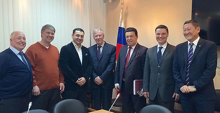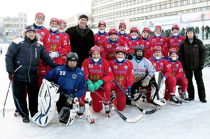 Бывший боксер-профессионал, актер, депутат от «Единой России» Николай Валуев (верхний ряд, в центре) – вице-президент Федерации хоккея с мячом России