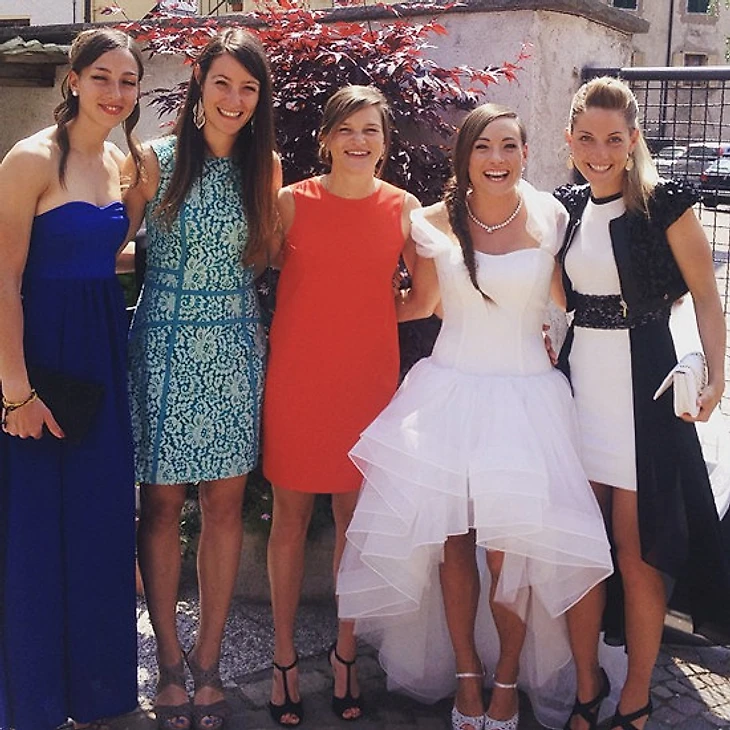 А вот и цвет женского биатлона Италии. Слева-направо: Лиза Витоцци, Алексия Рунгггальдир, Николь Гонтье, Доротея Вирер, Федерика Санфилиппо.