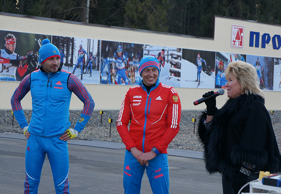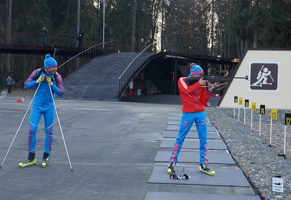 На открытие стрельбища олимпийский чемпион Александр Легков предсказуемо пригласил Антона Шипулина, с которым его связывают давние дружеские отношения. Почетным гостем церемонии был и Губернатор Московской области Андрей Воробьев. Участники открытия, собравшего почти тысячу зрителей, опробовали биатлонные мишени, постреляв по ним из положения стоя. Антон Шипулин продемонстрировал эталонную стрельбу. Александр Легков в контрольной серии промахнулся дважды. Затем олимпийские чемпионы поучаствовали в церемониальной гонке с четырьмя огневыми рубежами, которую они завершили, взявшись за руки.