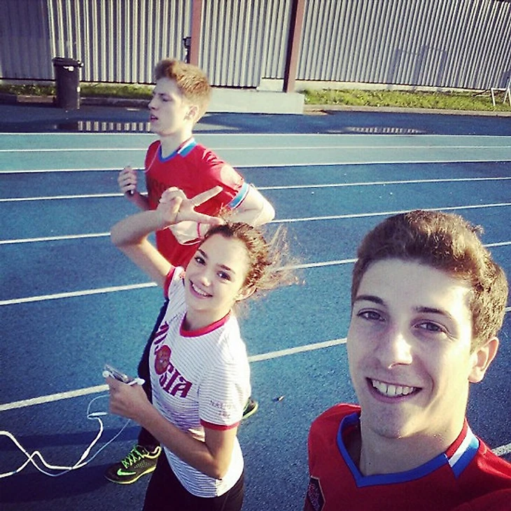 «Тренируемся два раза в день по два часа на льду и в перерыве зал. Бегаю не много – два раза в неделю по 40 мин, аэробной нагрузки хватает на льду. Еще есть один выходной На сборах тоже все как обычно. Лед два раза в день, зал, хореография, джаз-класс, в промежутках завтрак, обед и ужин. В конце дня бассейн и спать».