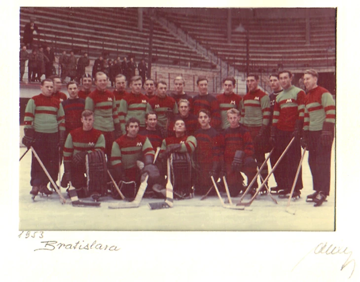 Советская хоккейная команда в «братской» Братиславе, 1953 год.