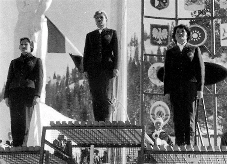 У неё для пресловутых церемоний был таки тёмно-серый пиджачок (польки Эльвира Серочиньска и Хелена Пилейчик щеголяли в красных) – как и у лыжниц: Любови Барановой (бывшей Козыревой), Марии Гусаковой и Радьи Ерошиной: