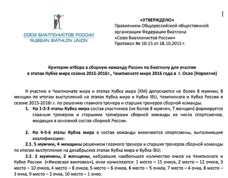 В российском биатлоне все повторяется: летом/осенью тренеры пишут критерии отбора, правление и президент СБР их утверждают, а зимой... забывают. Такое ощущение, что критерии – формальность, а не свод правил.