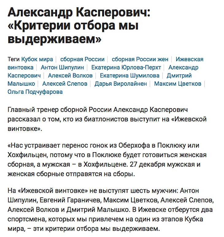 Sports.ru не будет заниматься буквоедством и анализировать, правильно поступили тренеры или нет (в нашем биатлоне вообще не любят, когда что-то анализируют на диванах), но критерии отбора не соблюдаются.
