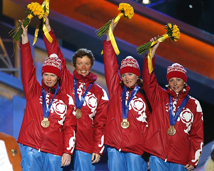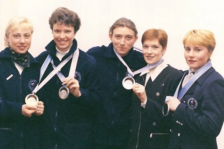 В 1998 году Леонид Гурьев (который, к слову, провалил следующий сезон) сделал вот это фото для истории – точнее, для тех её любителей, которым впоследствии не захочется копаться в деталях. На самом деле Анна Волкова и Луиза Носкова никакого отношения к эстафетному серебру Нагано не имеют. А имеет – Ольга Ромасько, которой здесь нет. Она же красноярка, а не тюменка.