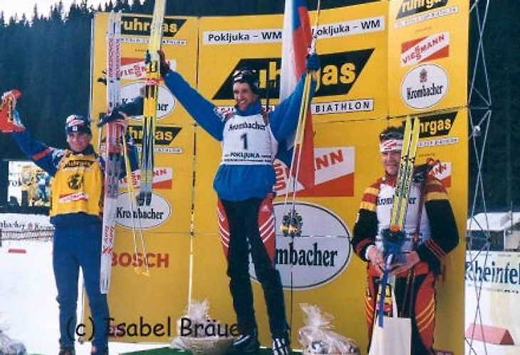 А вот в сезоне 2000 / 2001 она изменилась – и как кубковый прикид осталась жить в сезоне 2001 / 2002. Лучшее доказательство тому – Павел Ростовцев. Фото, которое вы только что видели, – с ЧМ-2001 в Поклюке (имеются и подтверждающие видео). А вот и Рупольдинг-2002: