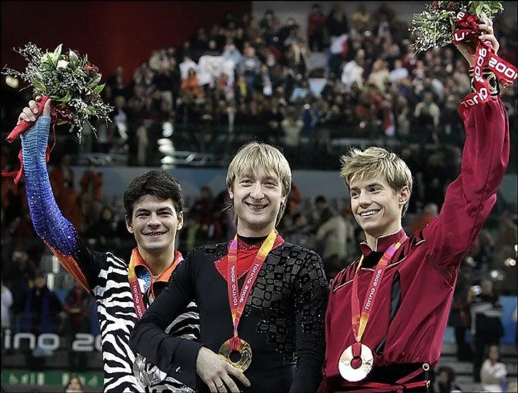 Потрепав по макушке швейцарца Стефана Ламбьеля и канадца Джеффри Баттла, Плющенко отправился веселить публику в том же костюме, в котором выступал в короткой программе.