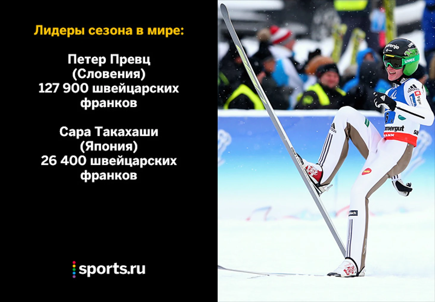 Прыжковые дисциплины в лыжах оплачиваются скромнее остальных, но берут регулярностью и частотой – 37 стартов в сезоне у прыгунов, 25 у двоеборцев. Кроме того, в прыжках достойно оплачиваются командные старты – 30 тысяч на четверку победителей, 22 тысячи – за второе место, 18 – за третье.