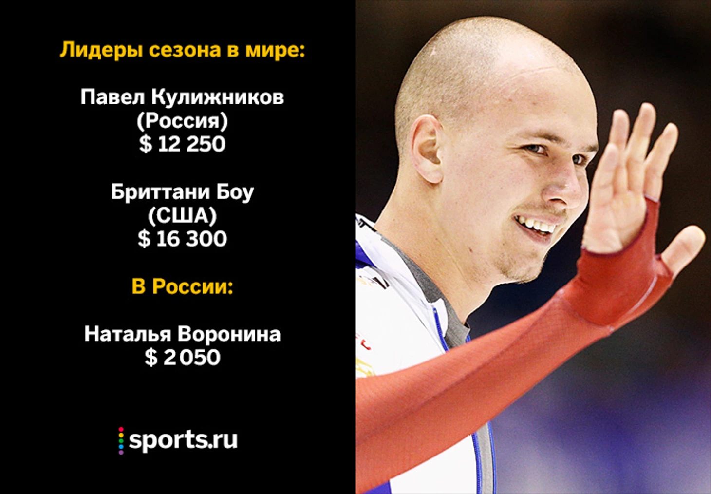 На конькобежном Кубке мира премиальные достаются только призерам (а на тех дистанциях, которые бегут дважды за этап еще и режутся пополам – обычно это 500-метровки, поэтому больше других страдает Павел Кулижников), зато здесь сразу три достойно оплачиваемых чемпионата мира. Кроме Кулижникова неплохие бонусы (под десять тысяч) собрал Денис Юсков – больше только у Павла и голландцев Свена Крамера и Кьелда Ньюса.
